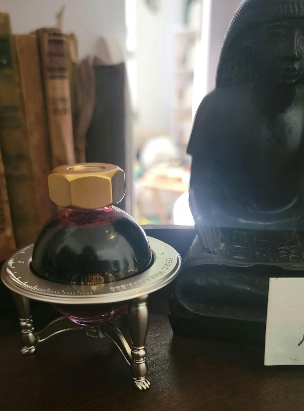 - Provides a stable surface for swirling dormant fountain pen inks